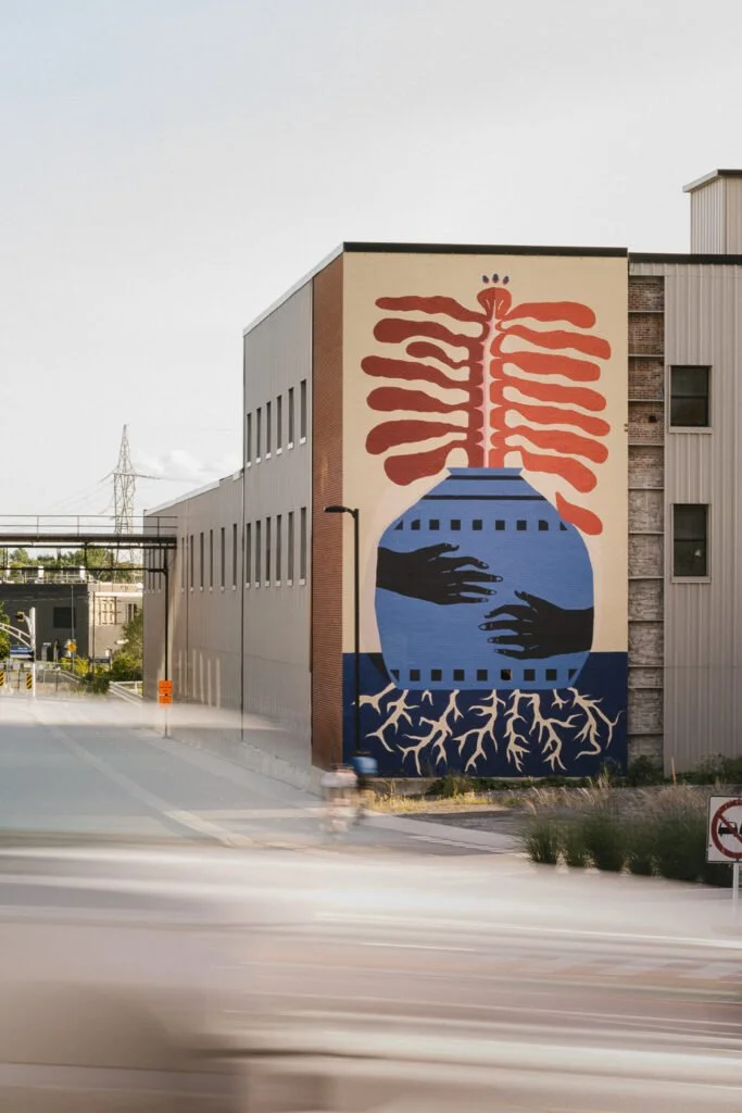 Inspired by the proverb “They tried to bury us, they didn’t know we were seeds.”, the We are Seeds mural, measuring 60ft with support from Canadian Heritage was created by myself and mentees Kiana Meness and Jose Palacios.